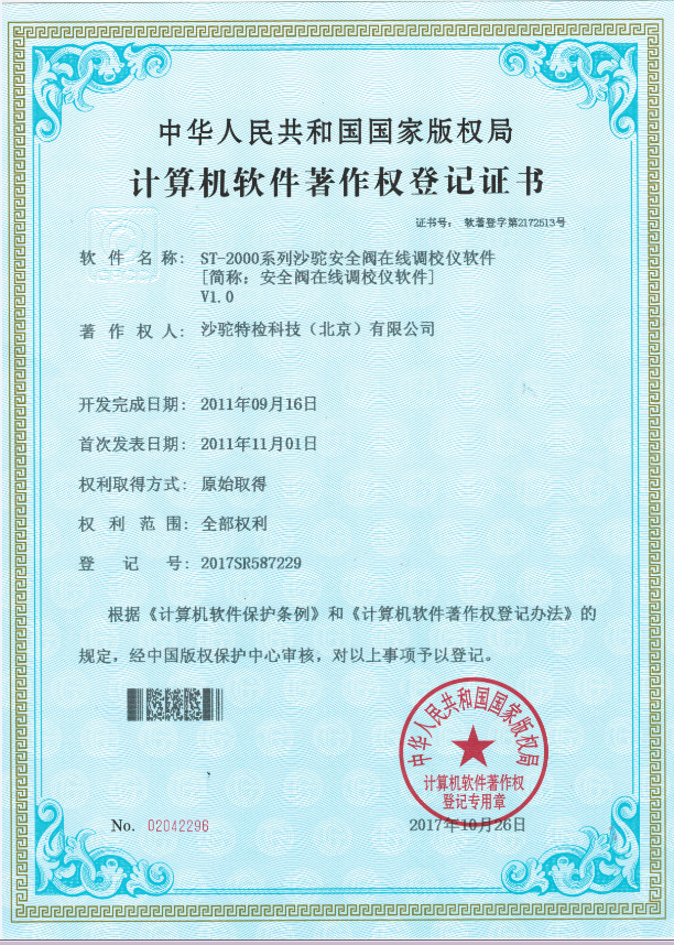 沙駝特檢科技(北京)有限公司,公司成立于二〇一〇年,我公司一貫致力于高科技產(chǎn)品的研制和開發(fā),主要生產(chǎn)安全閥在線調(diào)校儀以及提供安全閥維修、校驗等技術(shù)服務(wù),公司擁有一支技術(shù)一流的工程師隊伍,以科學(xué)的管理、先進的技術(shù)、一流的質(zhì)量、迅捷的服務(wù),滿足用戶的需要和期望,產(chǎn)品暢銷全國各地。我公司研制、開發(fā)、生產(chǎn)的ST-2000安全閥在線校驗儀采用美國CHEMCON技術(shù),可對帶壓在用或免拆、冷態(tài)狀況下的安全閥進行校驗及整定開啟壓力,從而滿足企業(yè)滿負荷、長周期連續(xù)生產(chǎn)的要求。該設(shè)備具有體積小、重量輕、可便攜操作等特點,它的研制成功填補了國內(nèi)此項技術(shù)的空白,在國際上處于技術(shù)領(lǐng)先地位。該產(chǎn)品已在國內(nèi)石油、化工、冶金、電力等三十余家企業(yè)以及國家安檢部門中使用,取得了良好的信譽。